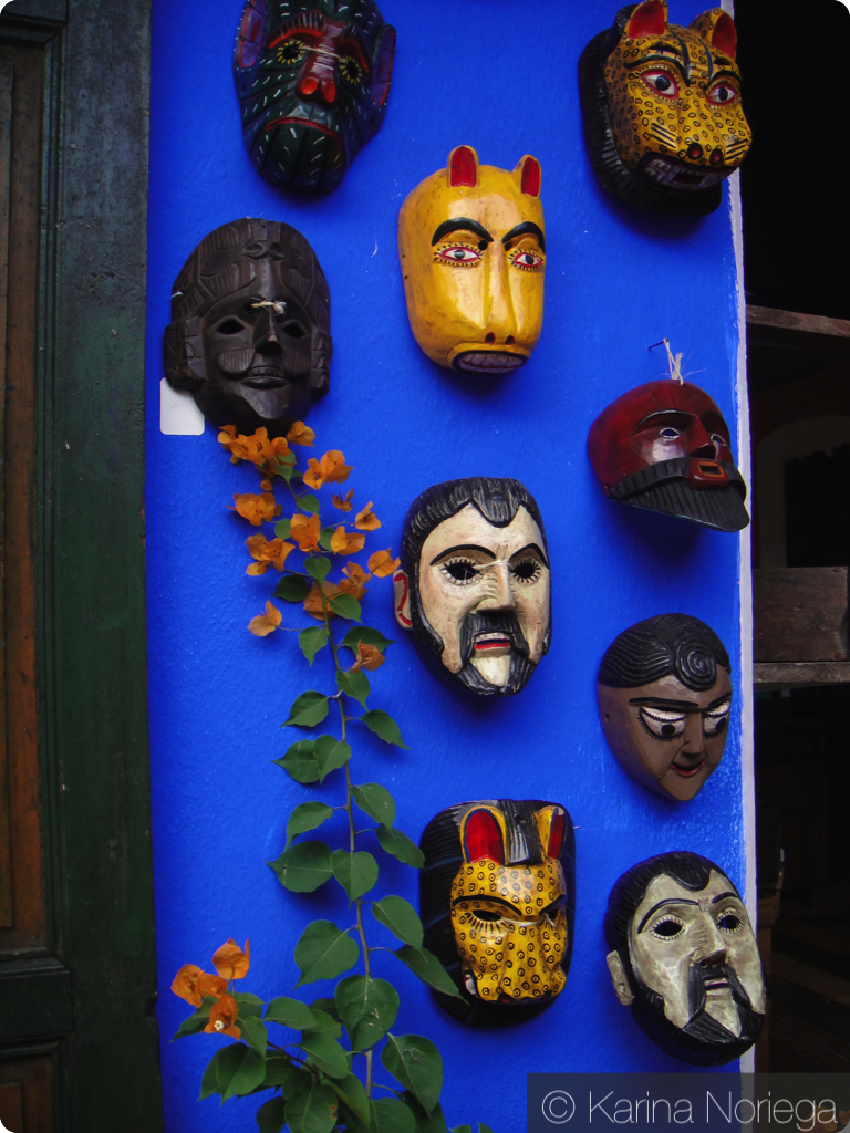 Carved Masks are worn during ceremonies and dances to represent sacred animals, the Spaniards and the Devil amongst others — Guatemala — Karina Noriega