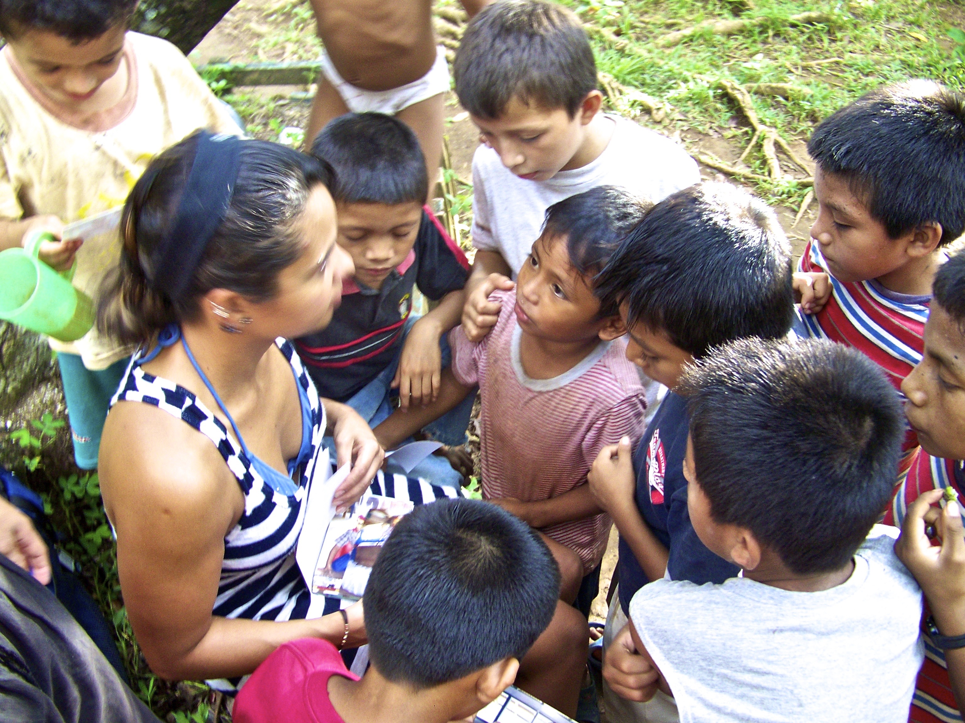 Children at Casa Guatemala gather around Karina, Rio Dulce, Guatemala — April Beresford