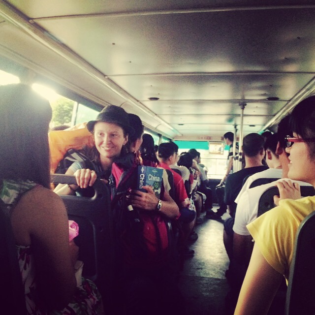 First time riding on a Chinese public bus. The whole system is made easier by curious locals eager to speak English and help us determine our stop. Guilin, Guanxi, China – Karina Noriega